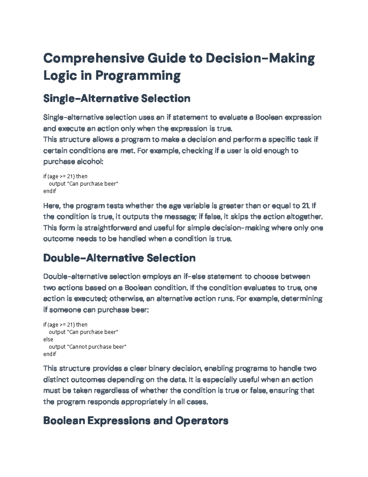 Comprehensive Guide to Decision-Making Logic in Programming (CS101 ...