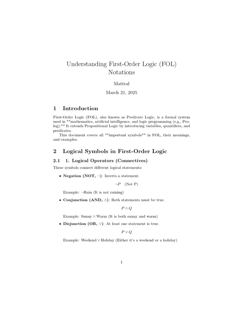FOL notes - First order logic - FIRST ORDER LOGIC NOTES Contents FOL ...