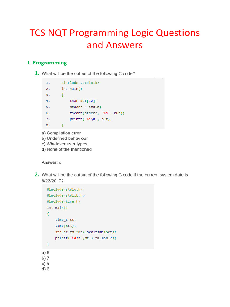 TCS NQT Programming Logic Q&A | PDF | Parameter (Computer Programming ...
