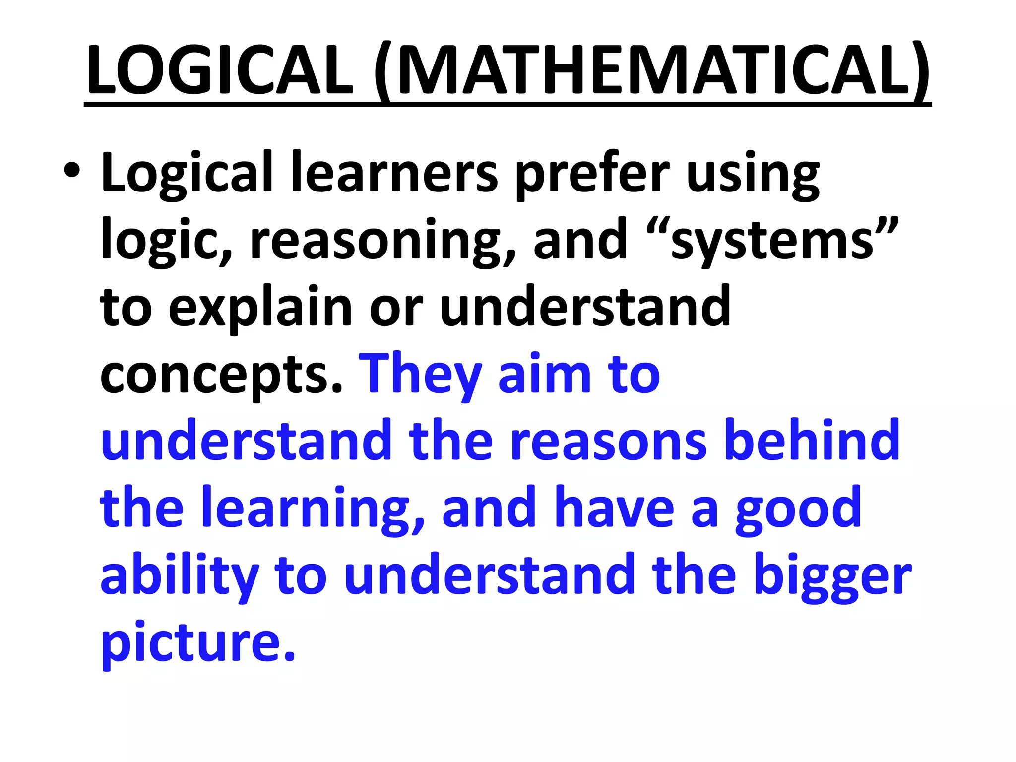 Logical Mathematical Learning Styles
