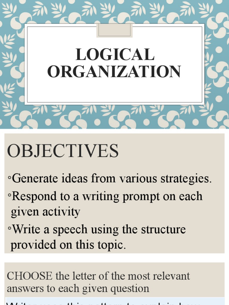 PPT - Logical Arrangement of Ideas --Organizational Patterns ...