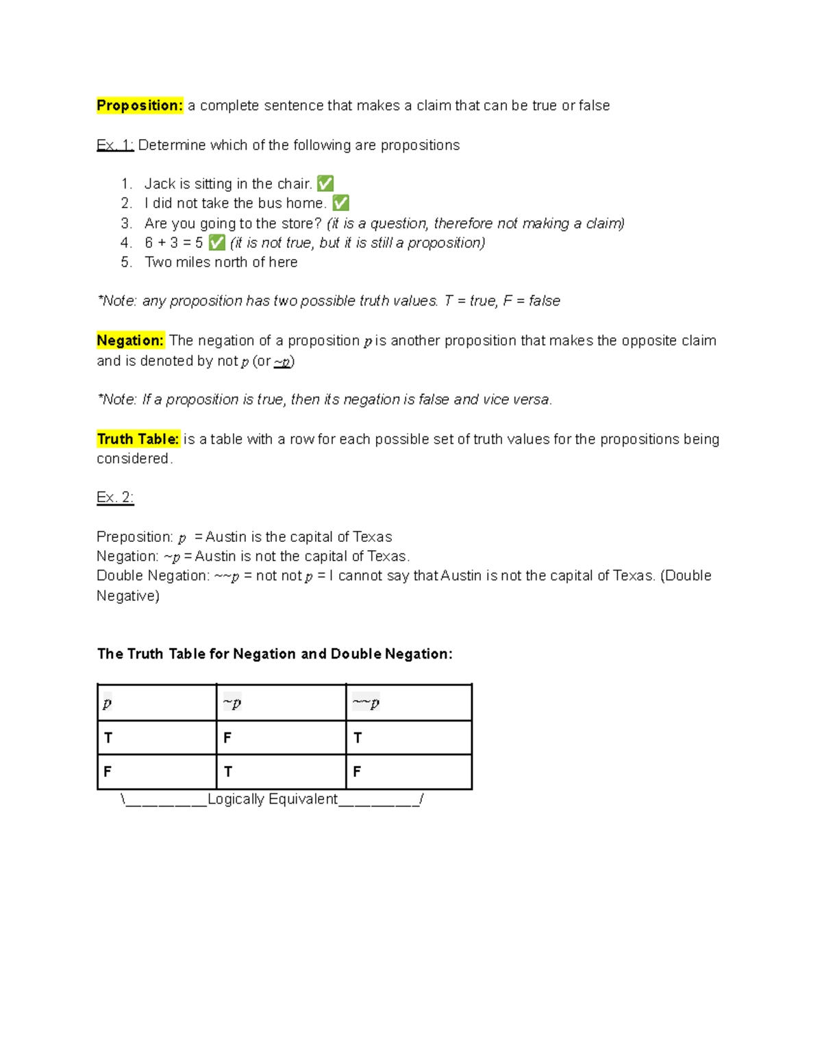 Understanding Logic: Propositions and Their Truth Values | Course Hero