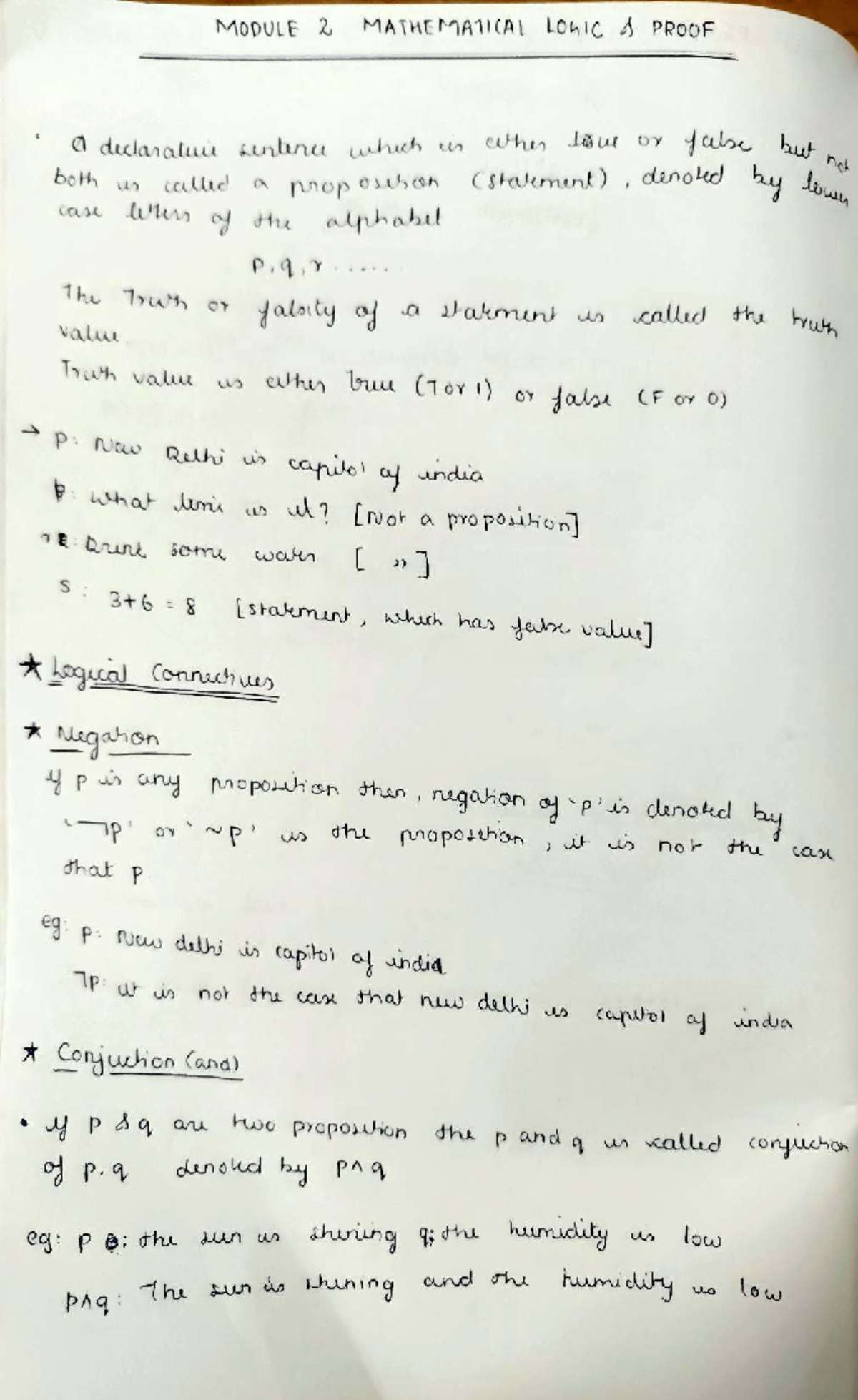 MODULE 2 MATHEMATICAL LOGIC: PROPOSITIONS AND TRUTH VALUES - Studocu