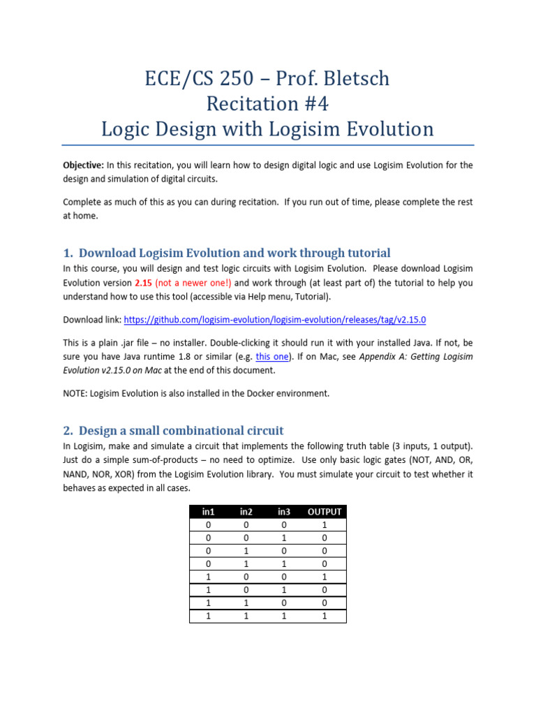 03_LOGISIM Lab: Build and Simplify Logic Circuit from Truth Table only ...