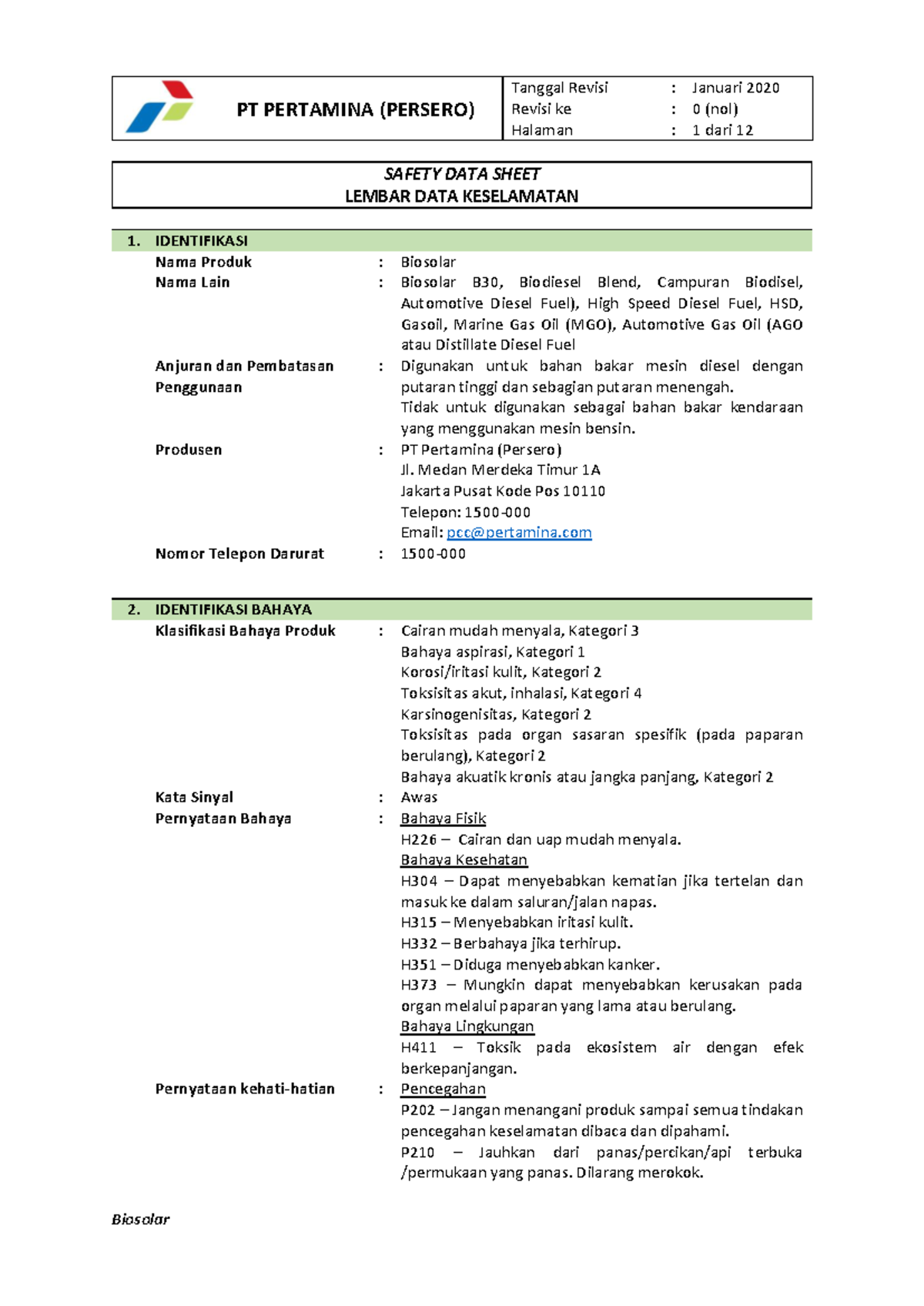 SDS Biosolar B40-Indonesia | PDF