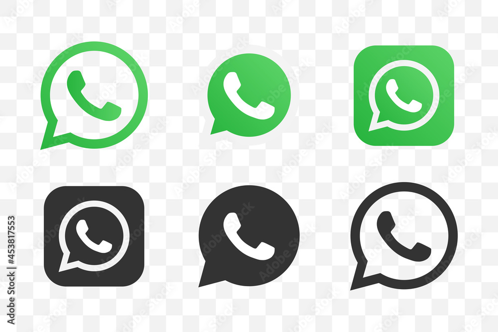 Whatsapp logo collection in different style on a transparent background ...