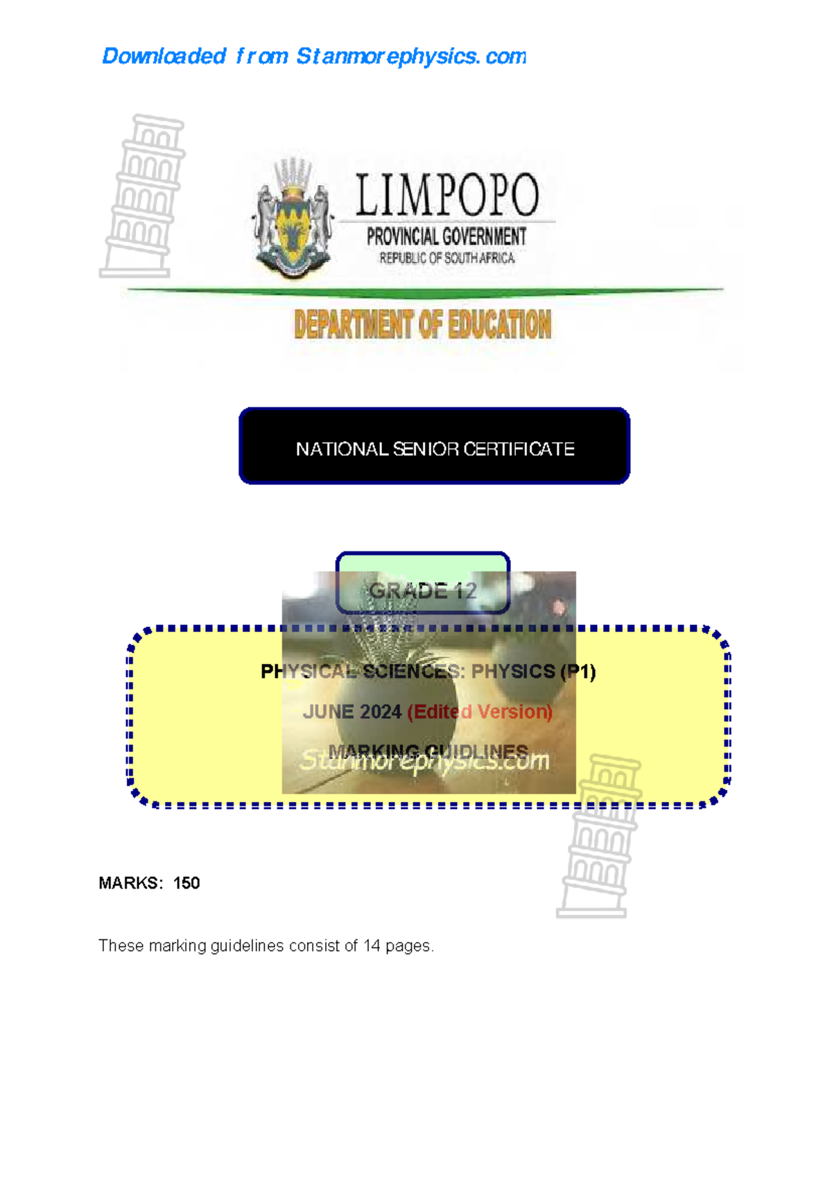 Physical Science Grade 12 Limpopo June 2024 Memo P1 Marking Guidelines ...