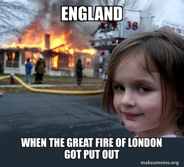 England when the great fire of london got put out - Disaster Girl Meme ...