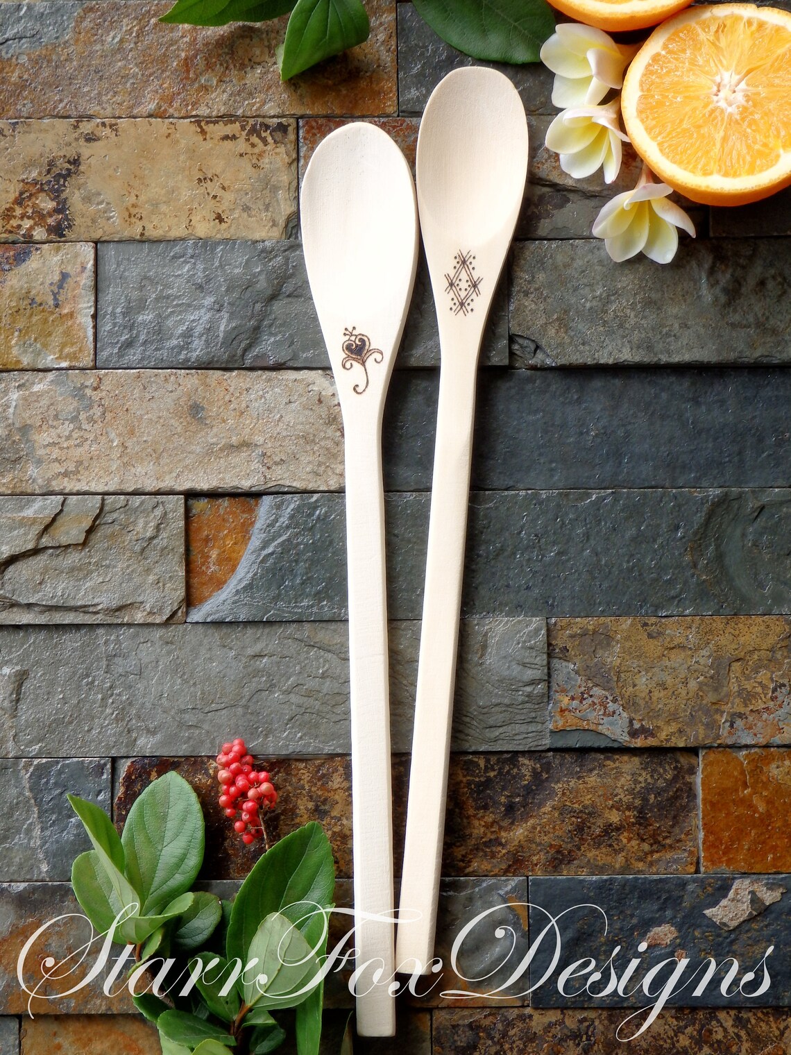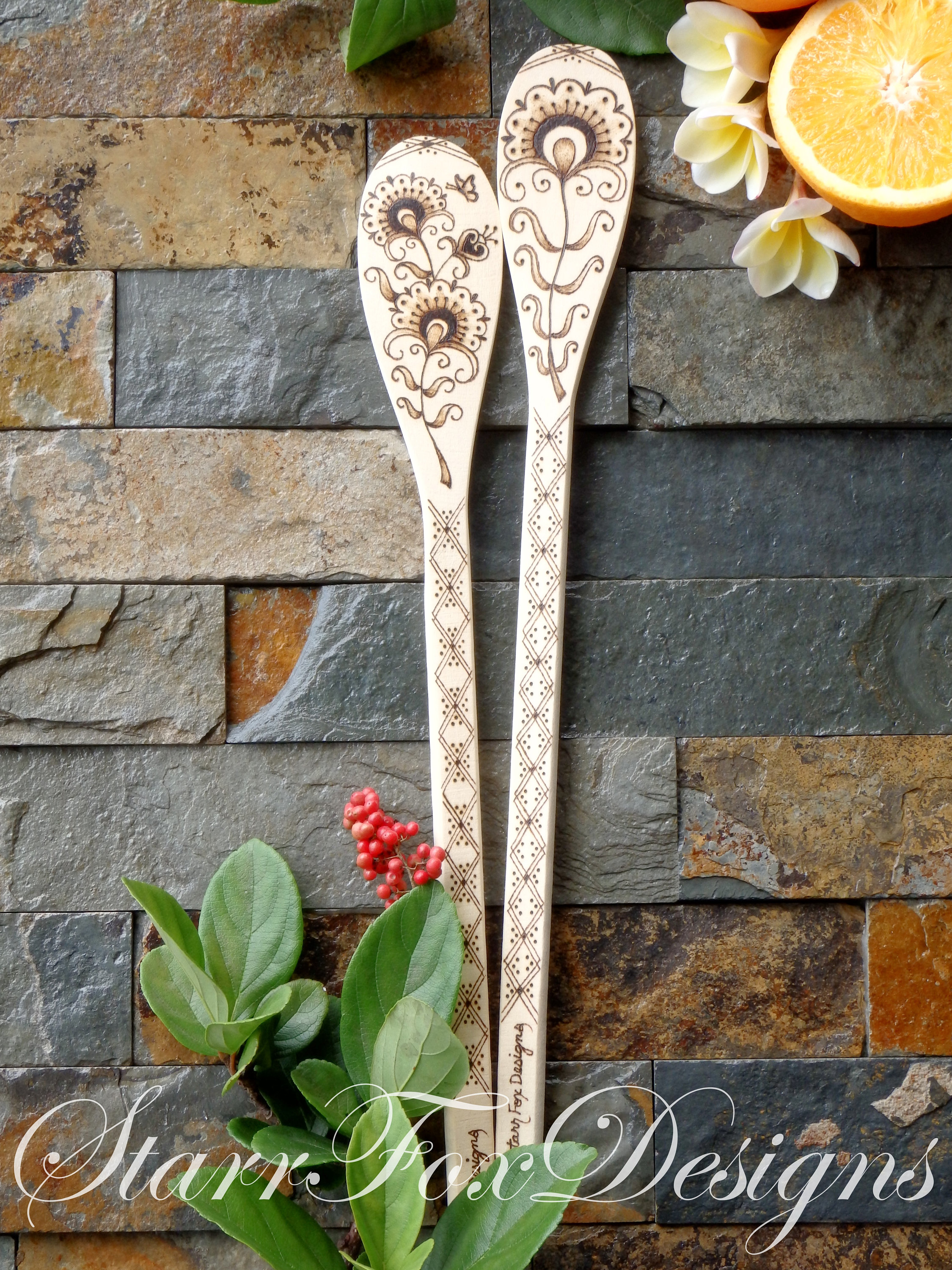 Folk Art Pyrography Decorated Long Wooden Spoons | Floral Kitchen ...