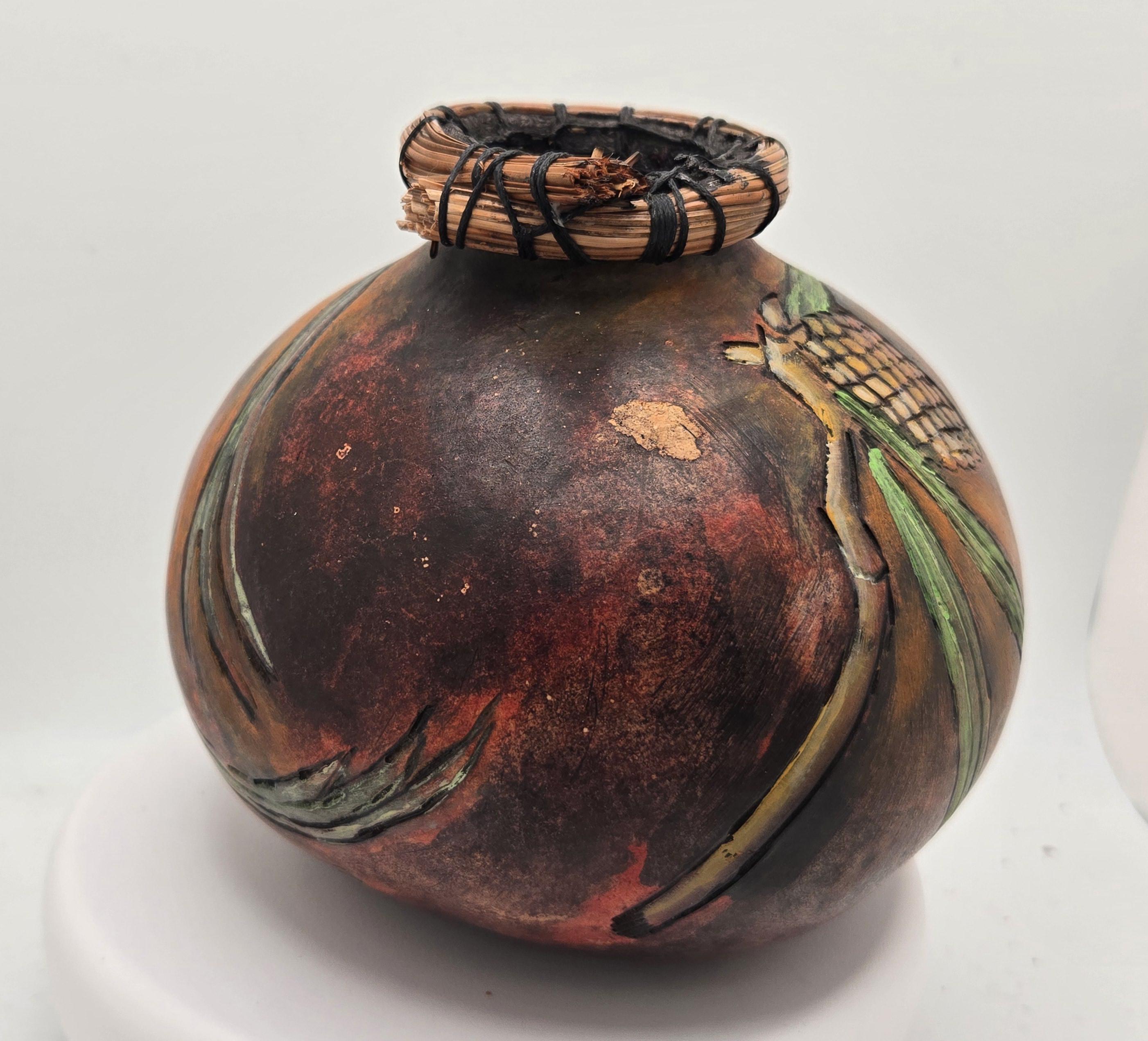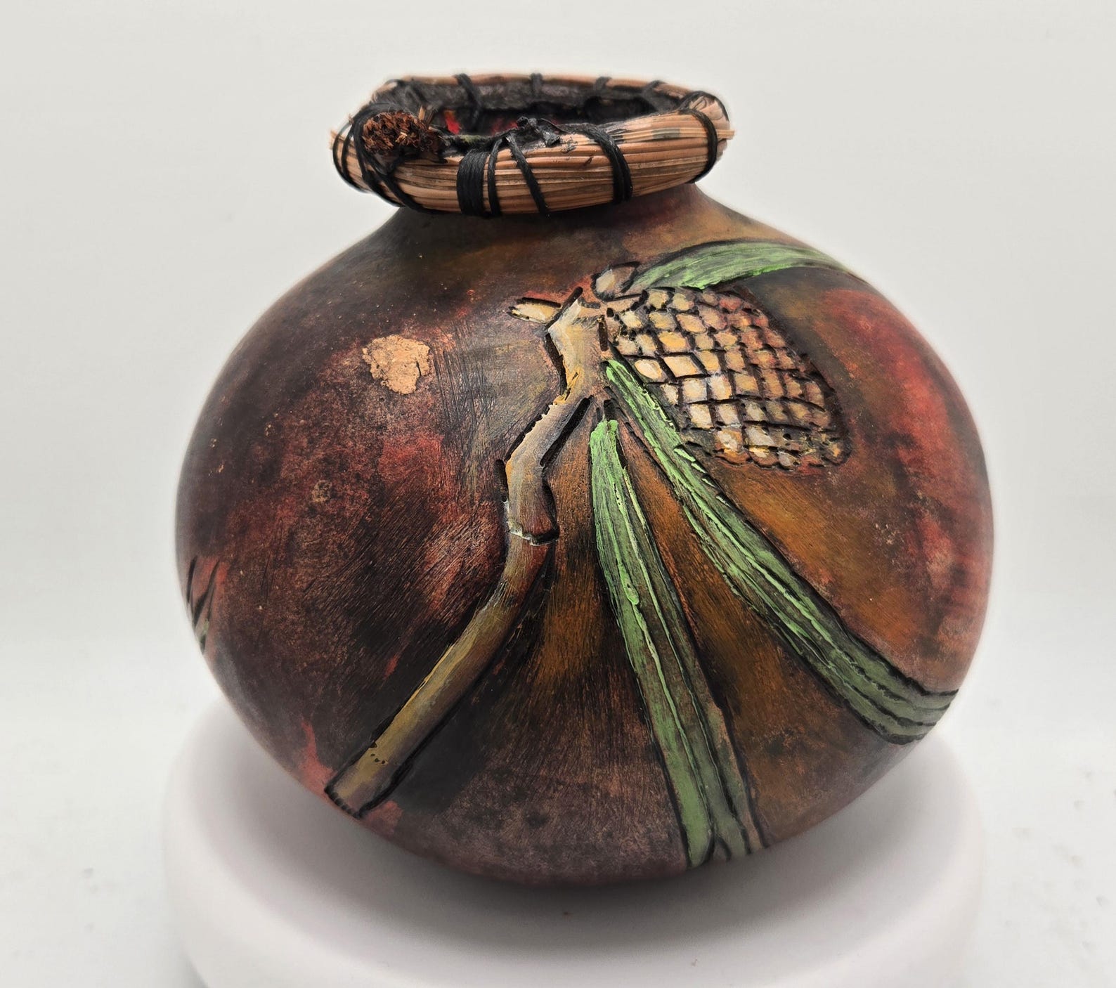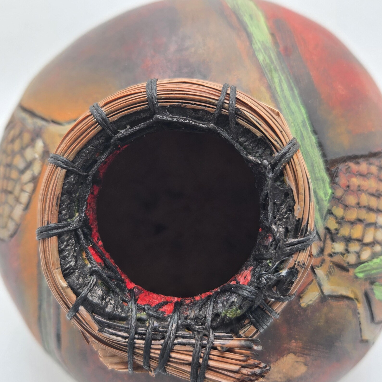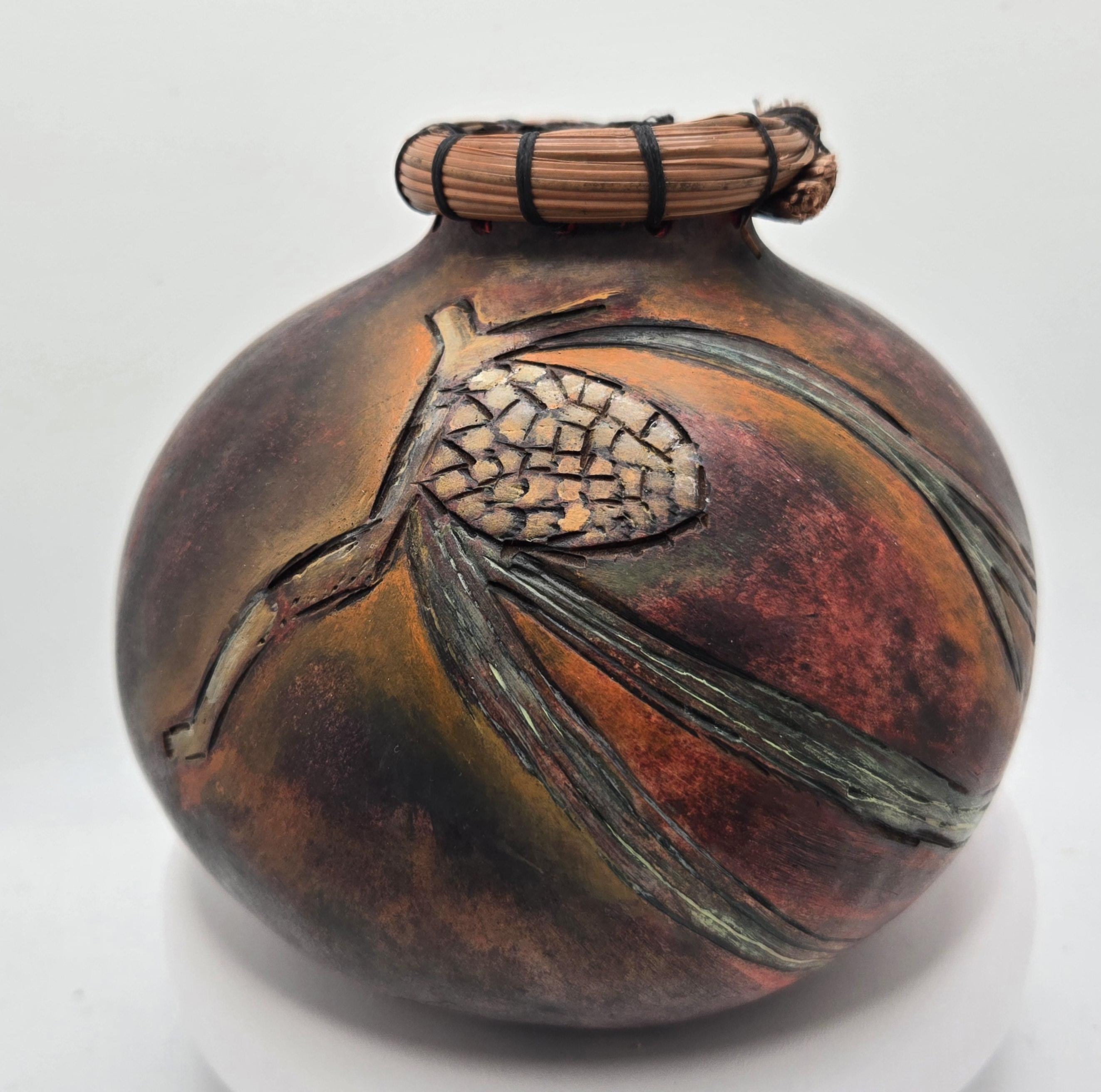 LONG LEAF PINE 5.5" Art Gourd Pyrography Ink & Acrylic, Pine Needle Rim ...