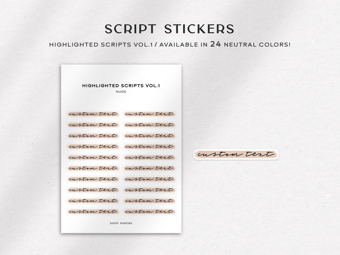CUSTOM TEXT - Highlighted Scripts Vol. 1 | Planner Stickers | Minimal ...