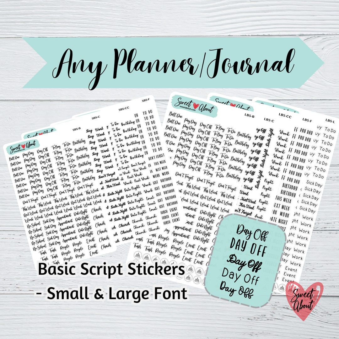 Basic Script Stickers for Planners or Journals - Large and Small Fonts ...