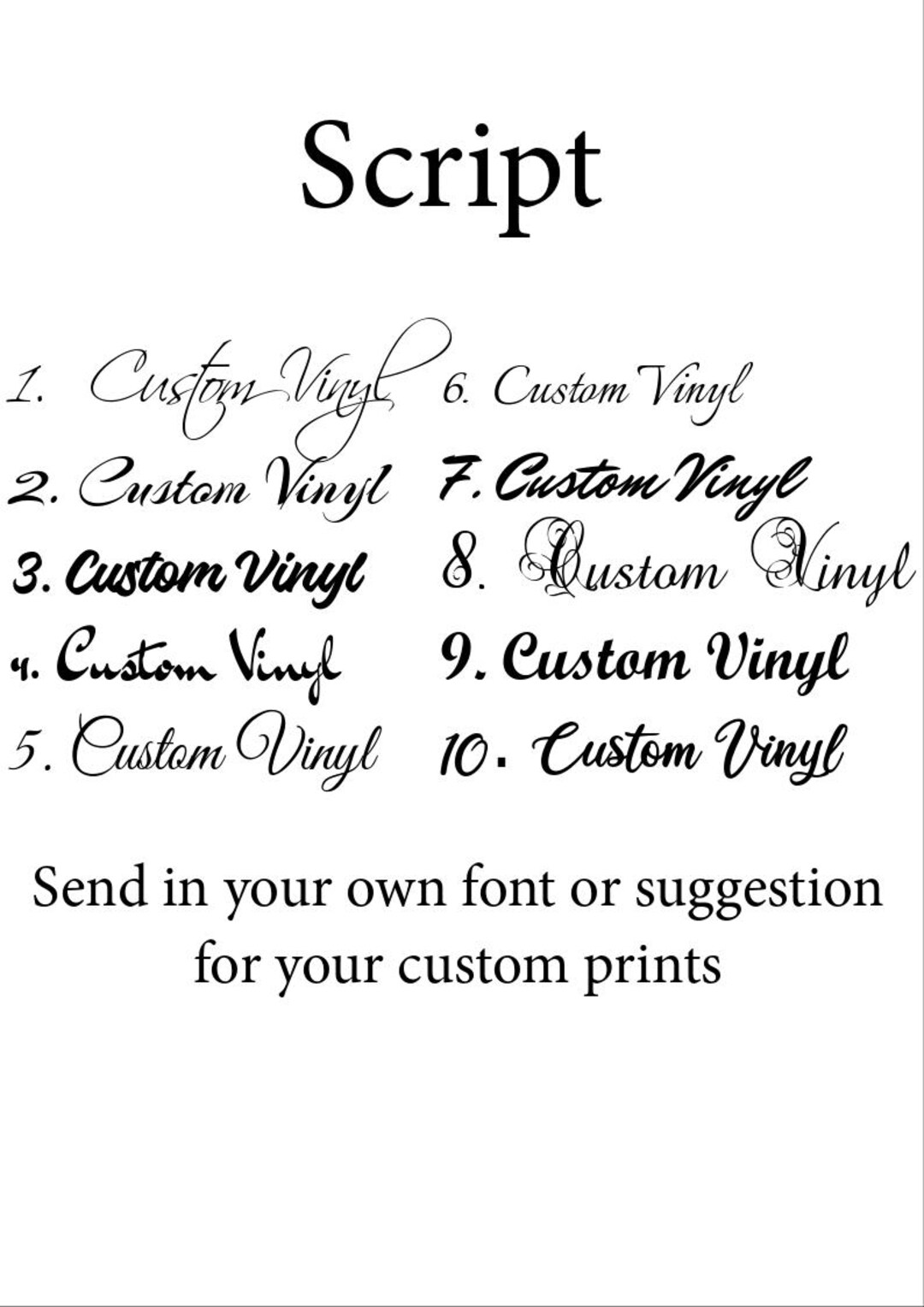 Script Font Custom Vinyl Stickers / Personalised Design Typography Text ...
