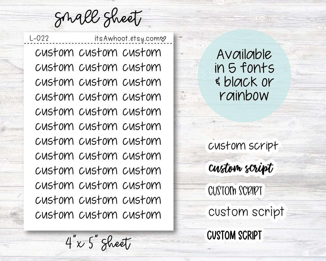 Custom Script Sticker Sheet, Planner Stickers, Choose Your Script ...