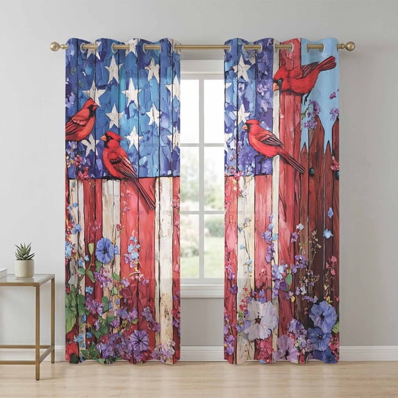 Cardinal Bird Flower Sheer Curtains 90 Inch Long 2 Panels, 4th of July ...