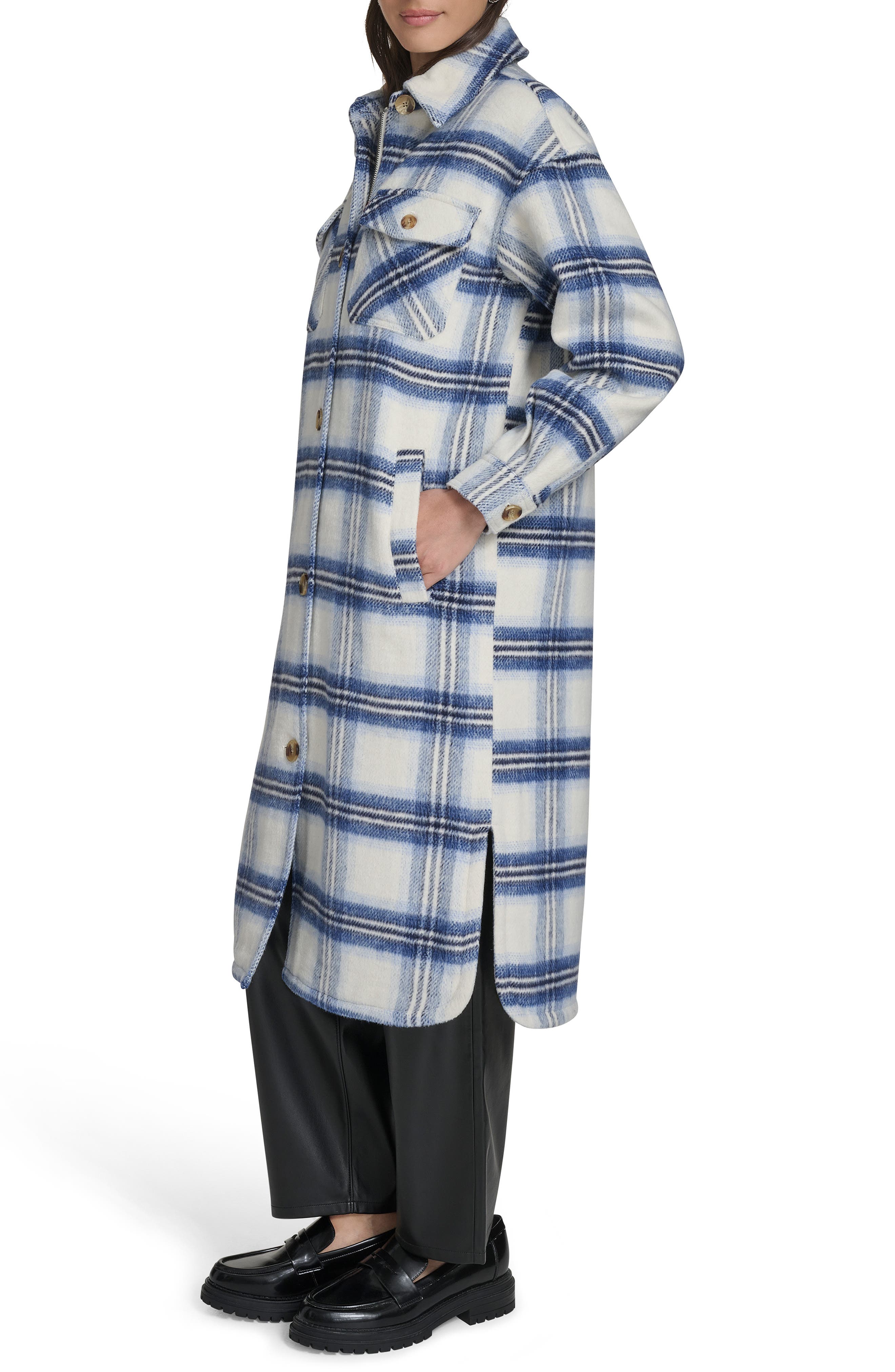 Longline check brushed shacket