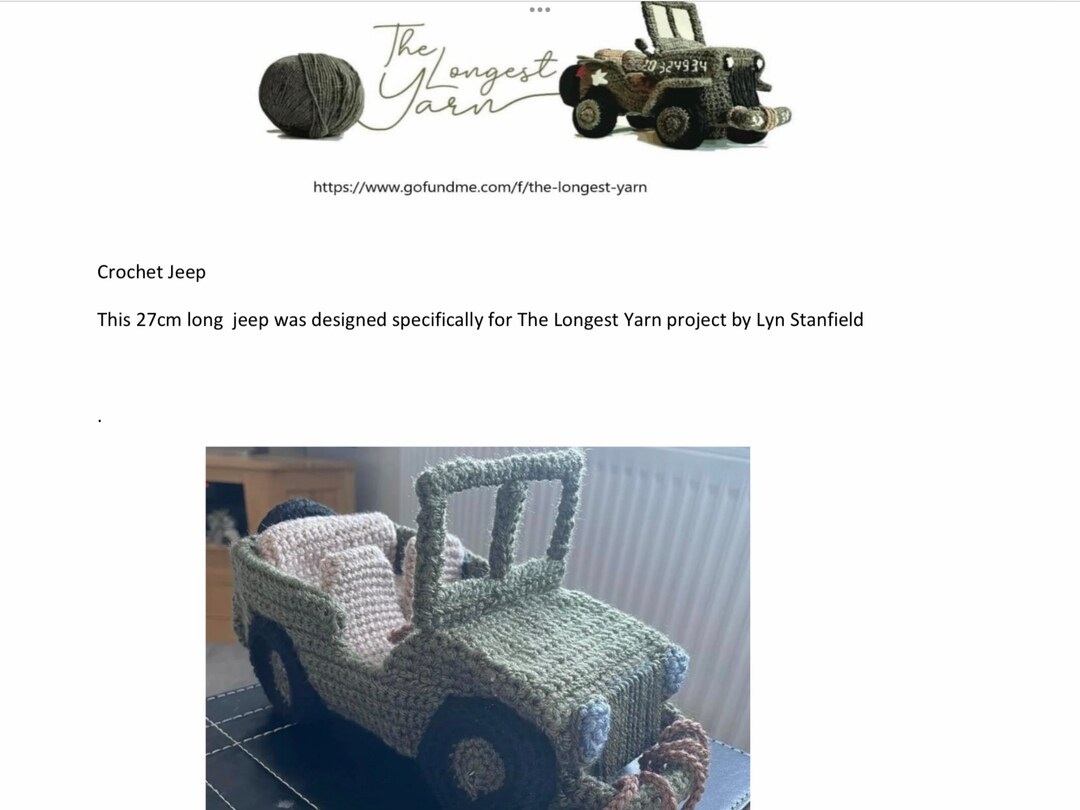 Longest Yarn PDF Crochet Pattern for 27cm Jeep - Etsy