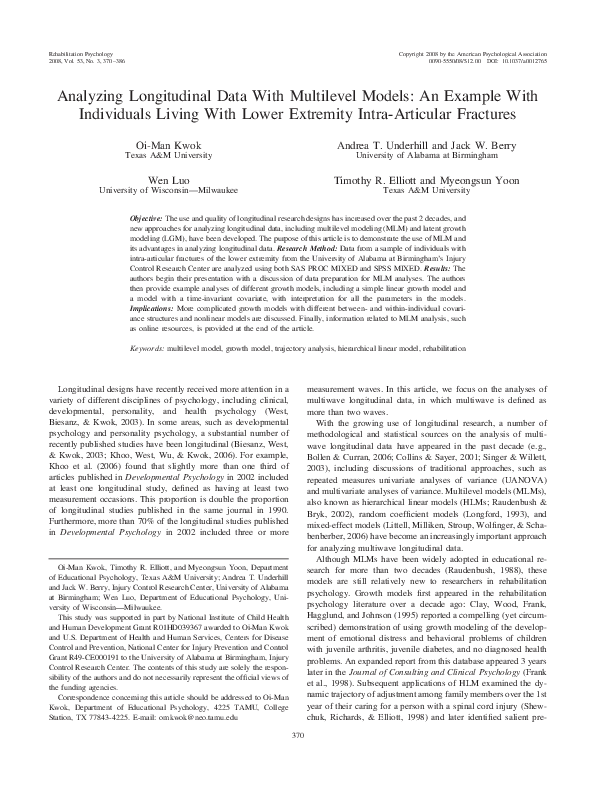 (PDF) Multilevel modeling for longitudinal data: concepts and applications
