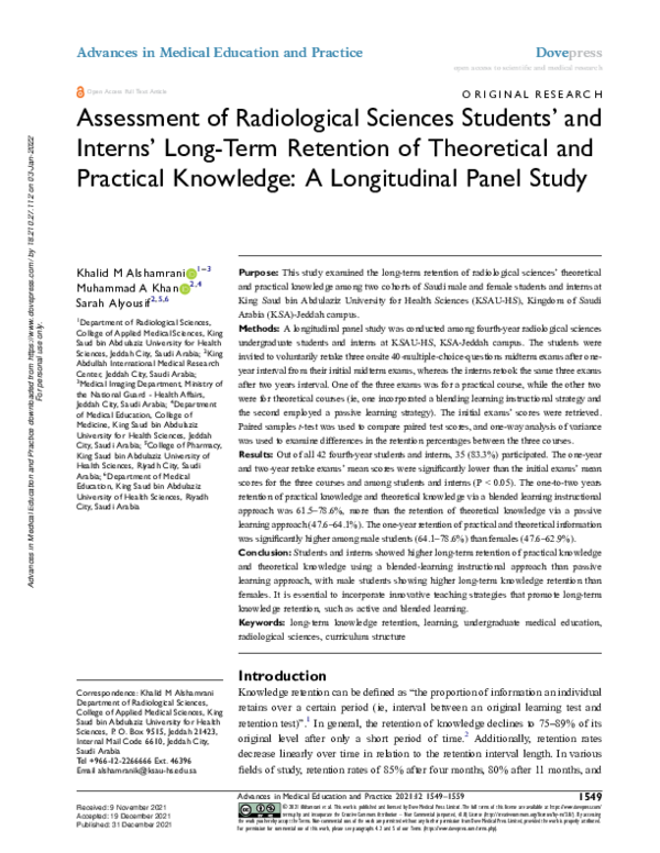 (PDF) Assessment of Radiological Sciences Students’ and Interns’ Long ...