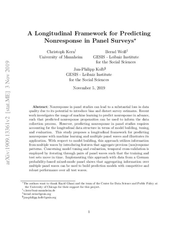 (PDF) A Longitudinal Framework for Predicting Nonresponse in Panel Surveys