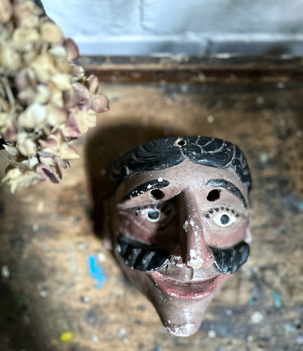 Late 19th Century French antique carved wood hand painted theatre mask ...
