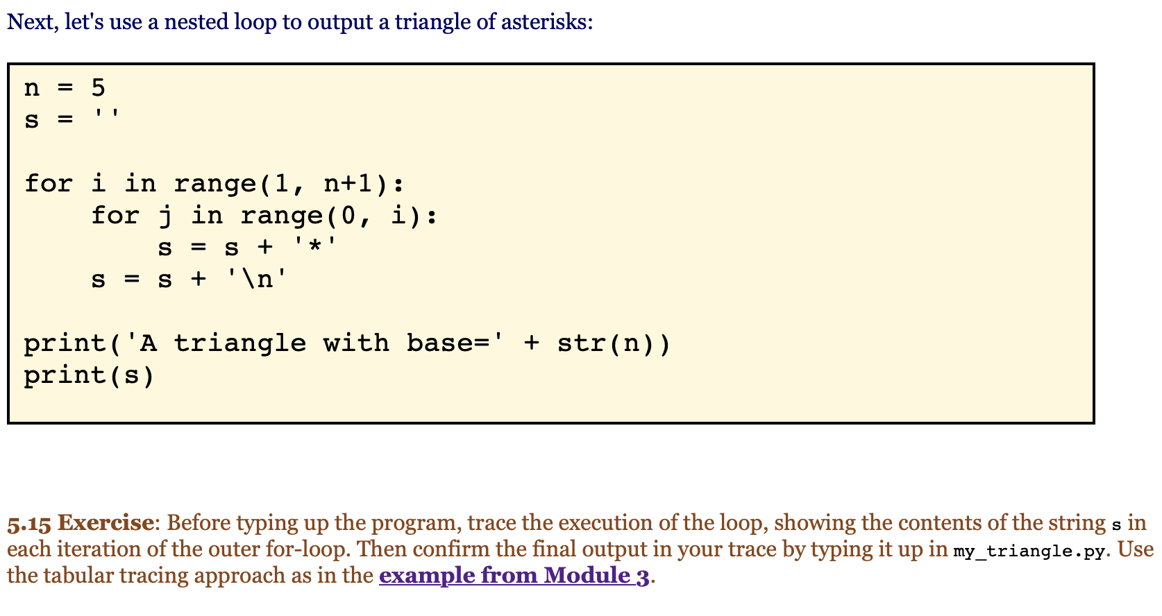 Solved Next, let's use a nested loop to output a triangle of | Chegg.com
