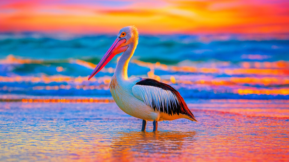 A colorful evening with a pelican