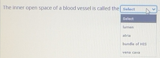 Solved: The inner open space of a blood vessel is called the select ...