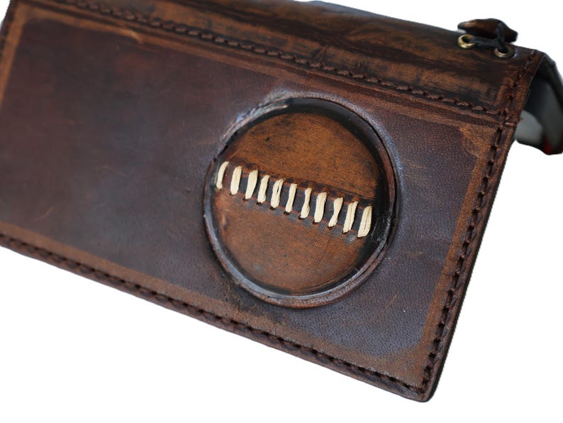 Handmade Leather iPhone 17 16 15 Wallet Case – "baseball Stitch Pattern ...