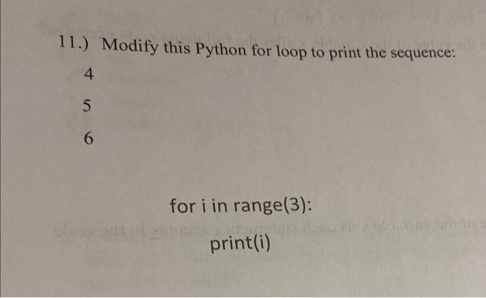 Solved 11.) Modify this Python for loop to print the | Chegg.com