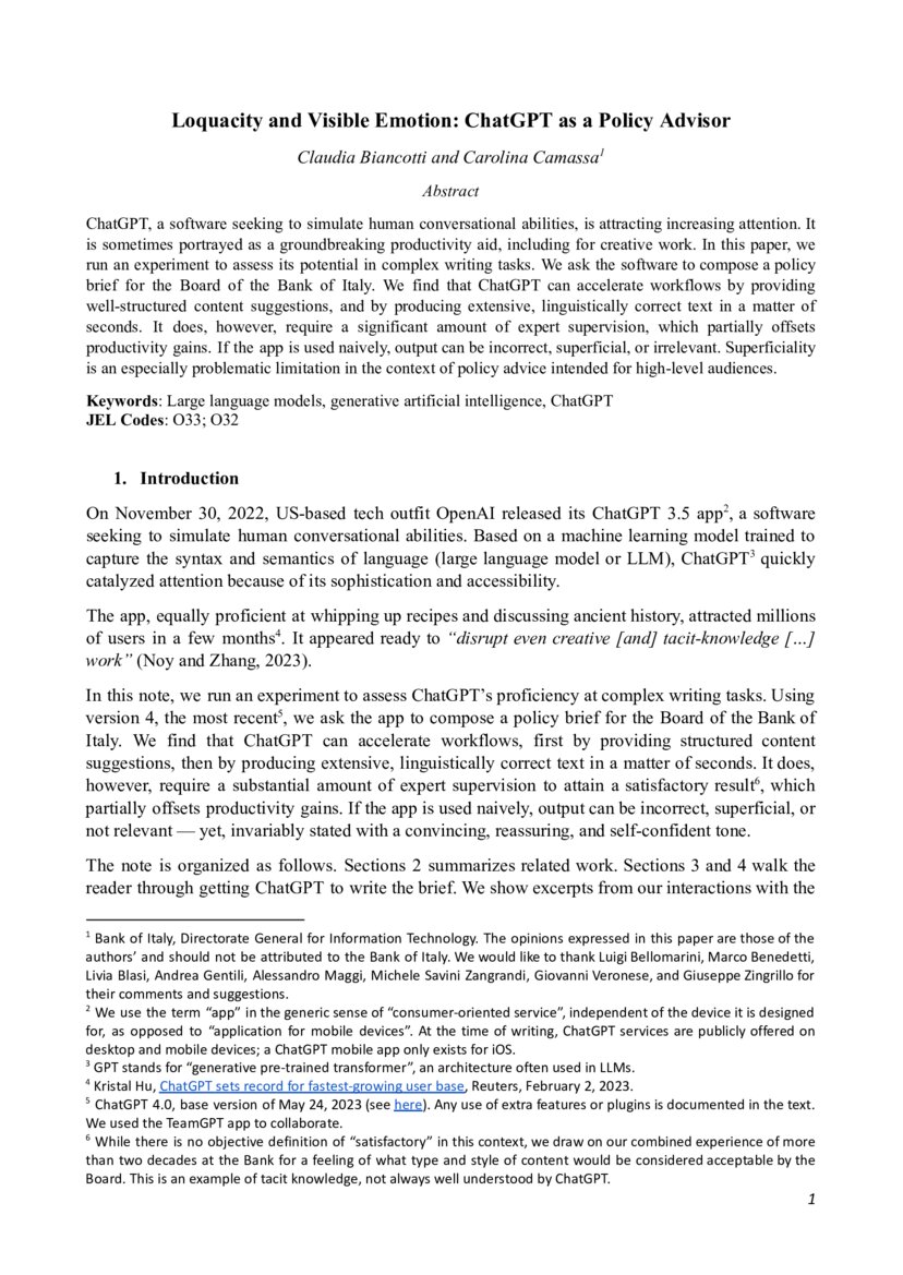 Loquacity and Visible Emotion: ChatGPT as a Policy Advisor | DeepAI