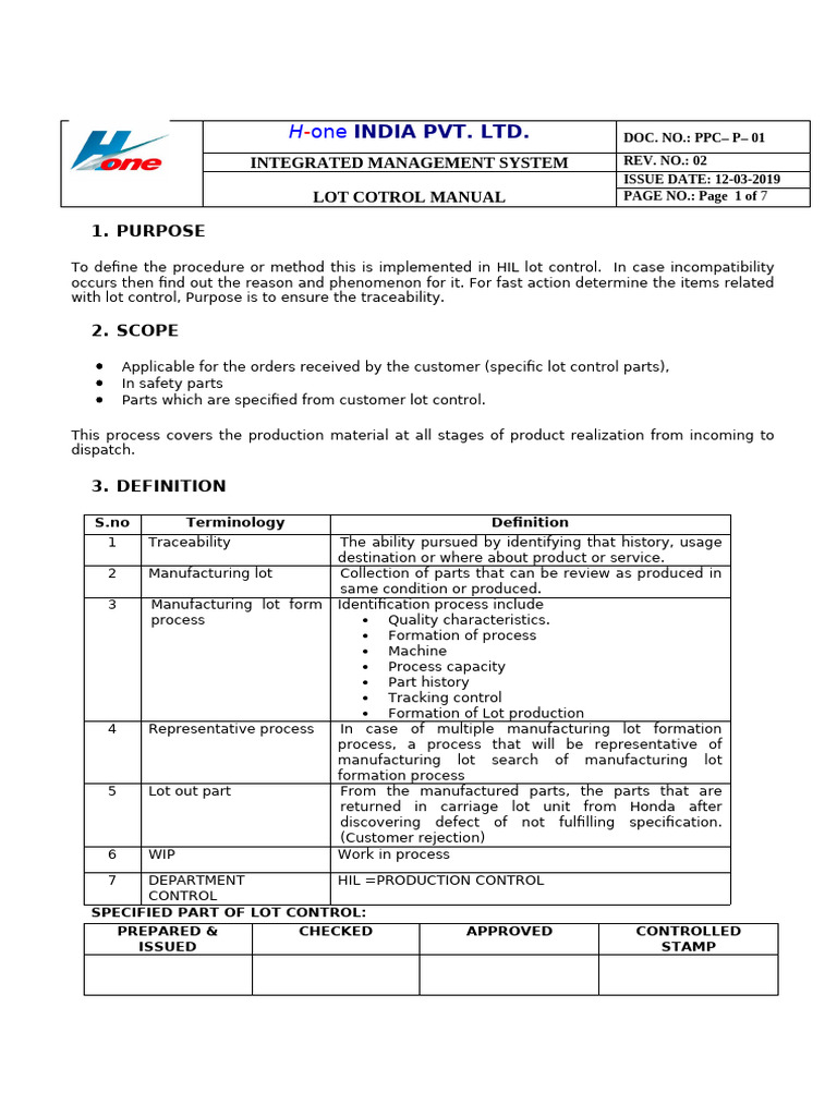 Ppc-p-01 Lot Cotrol Manual | PDF