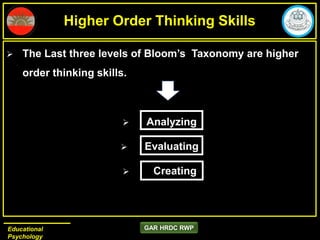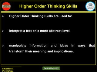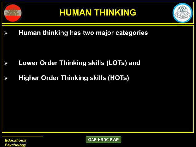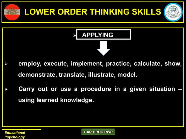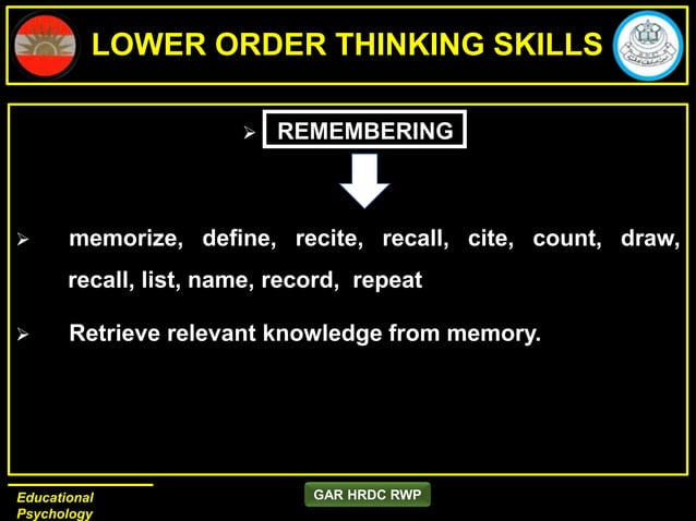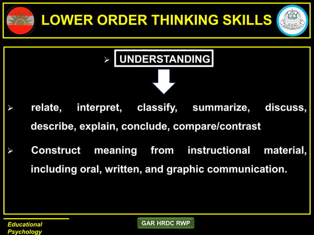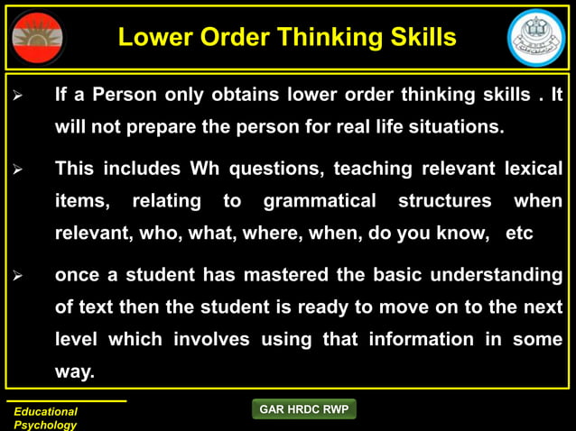 PPT - Lower Order Thinking Skills LOTS Higher Order Thinking Skills ...