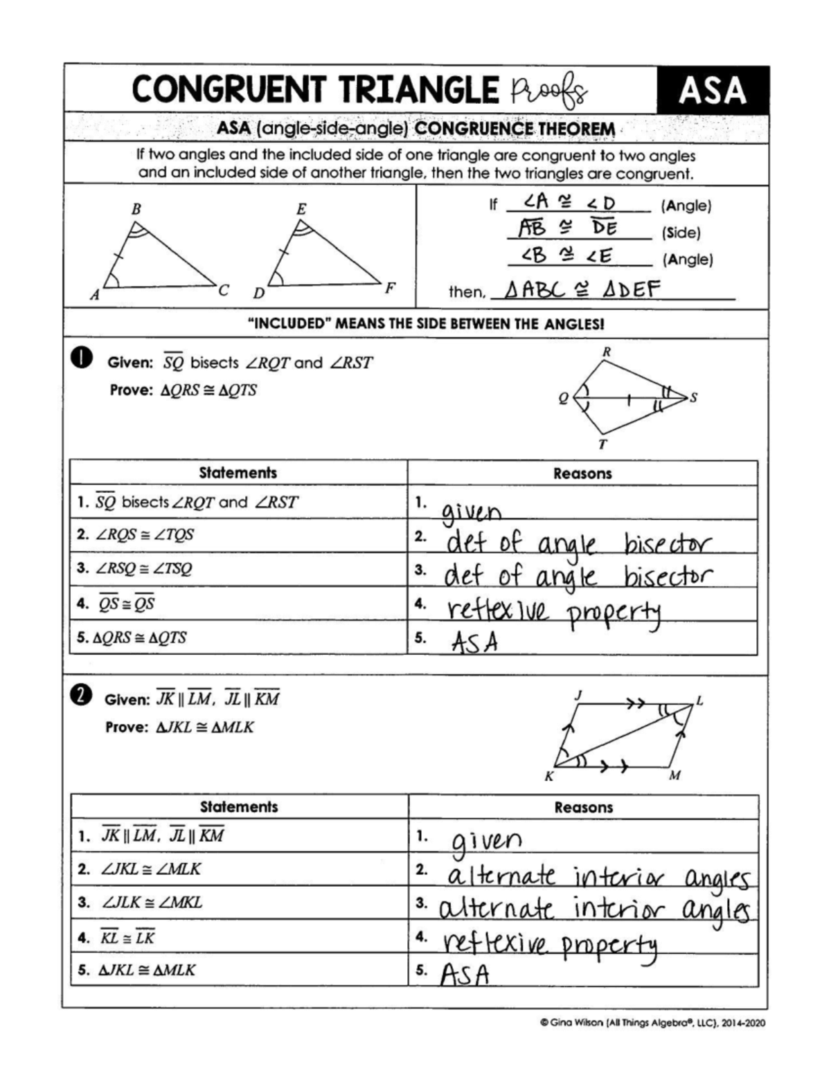Congruent Triangle Proofs: ASA, AAS, and HL Theorems - Studocu