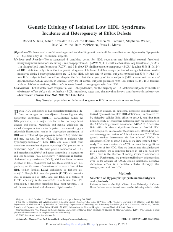 (PDF) Genetic Etiology of Isolated Low HDL Syndrome: Incidence and ...