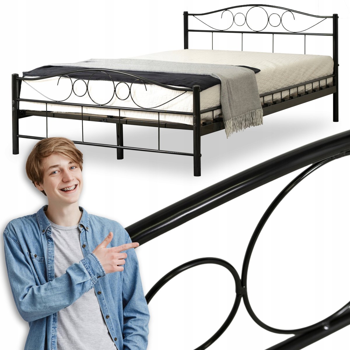 Łóżko 120x200 Metalowe Jednoosobowe Pojedyncze Młodzieżowe Czarne ...