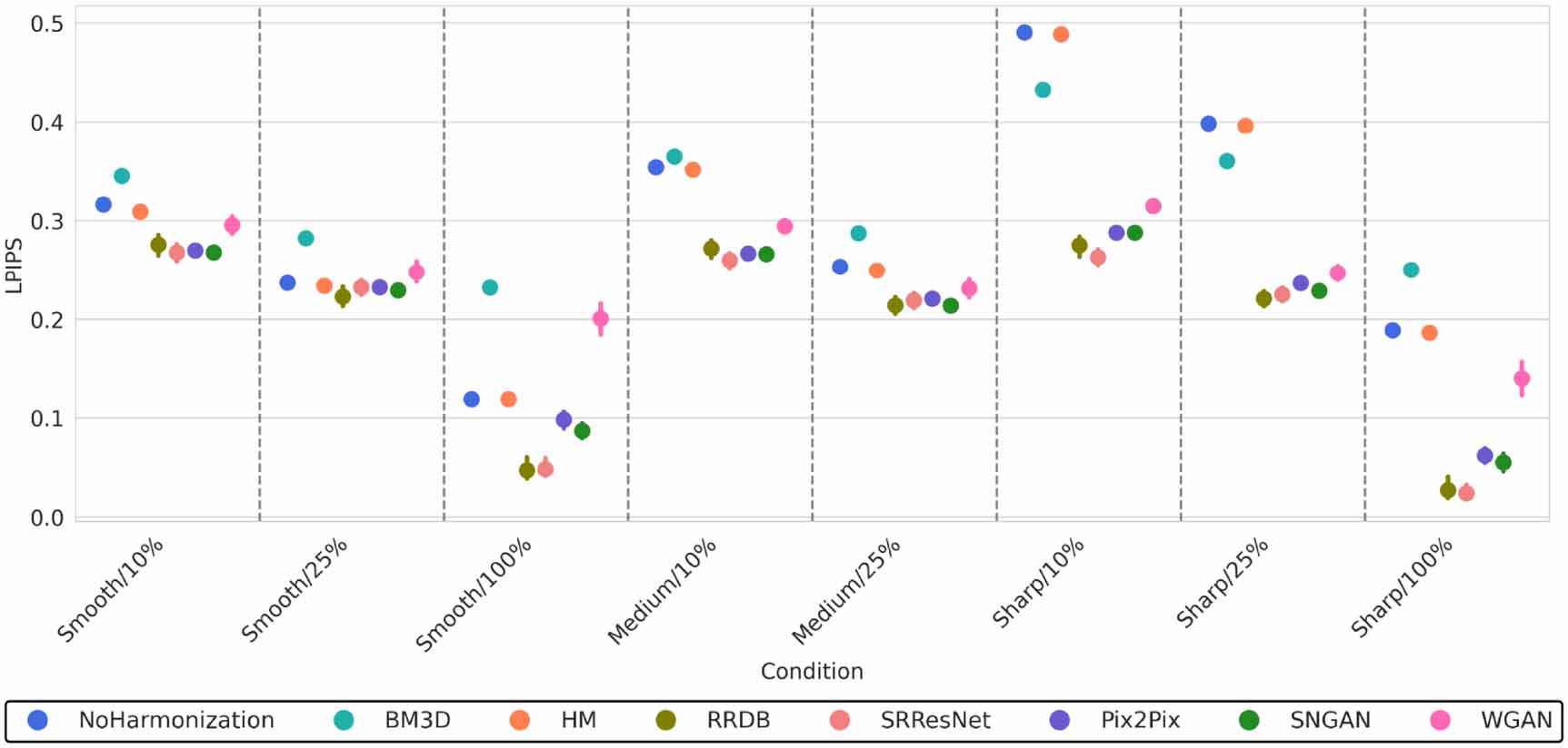 Comparison of experimental results according to LPIPS. Lower values of ...