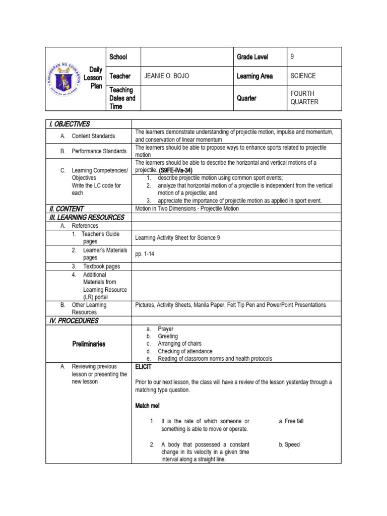 Health-6-F - LPPPP - Grade 6 LESSON PLAN School LUINAB ELEMENTARY ...