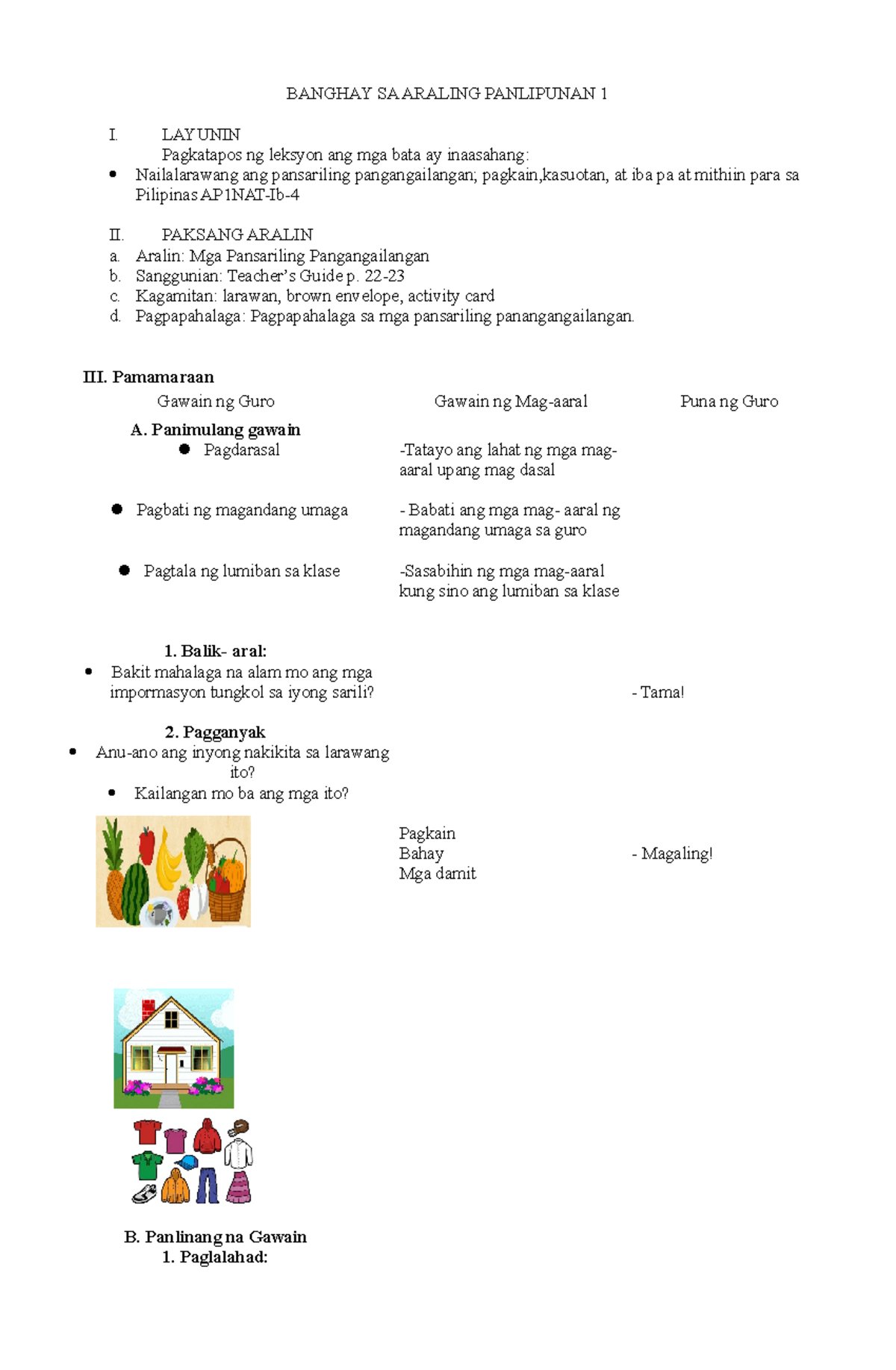 Lpppp - Assignment 101 - BANGHAY SA ARALING PANLIPUNAN 1 I. LAYUNIN ...