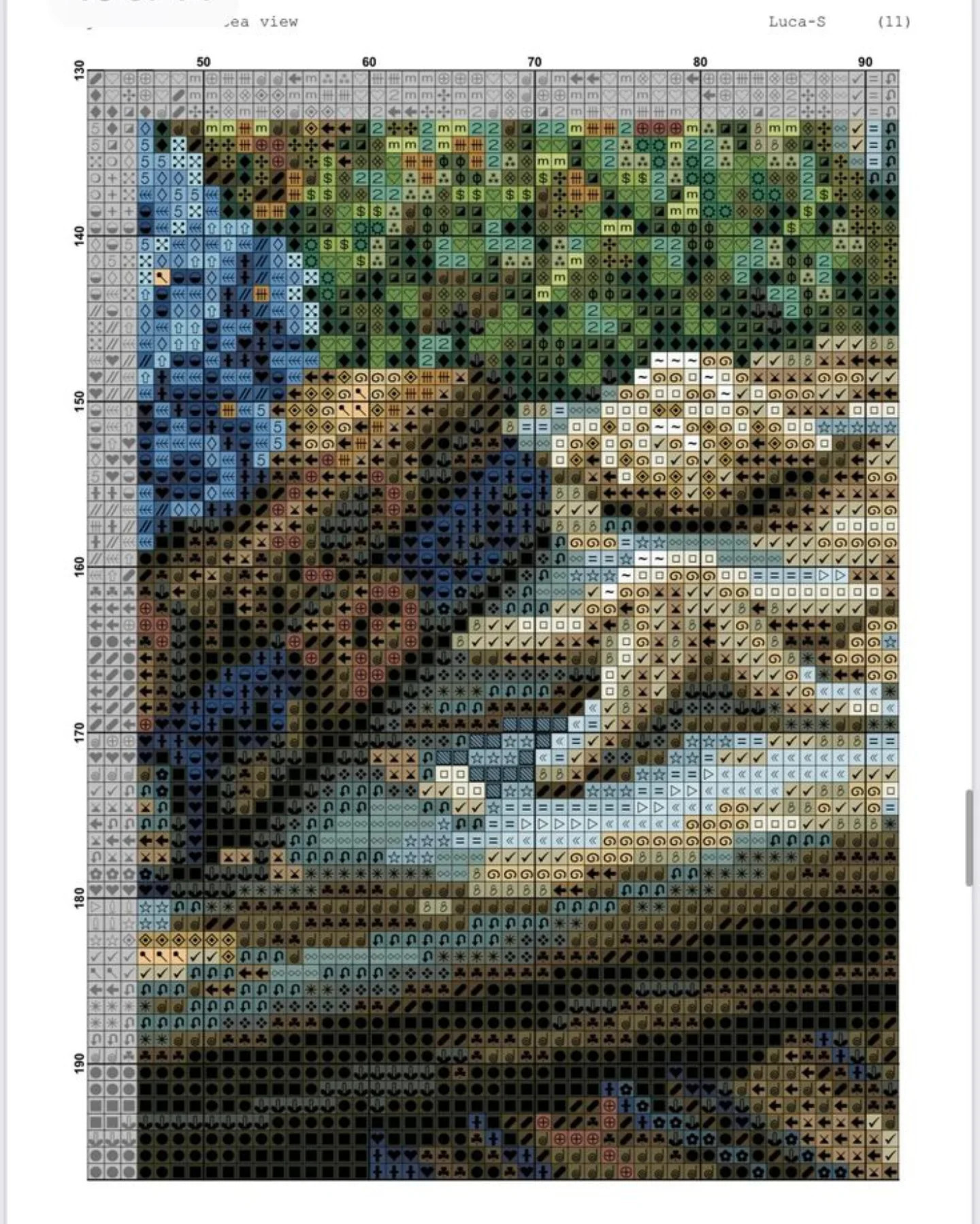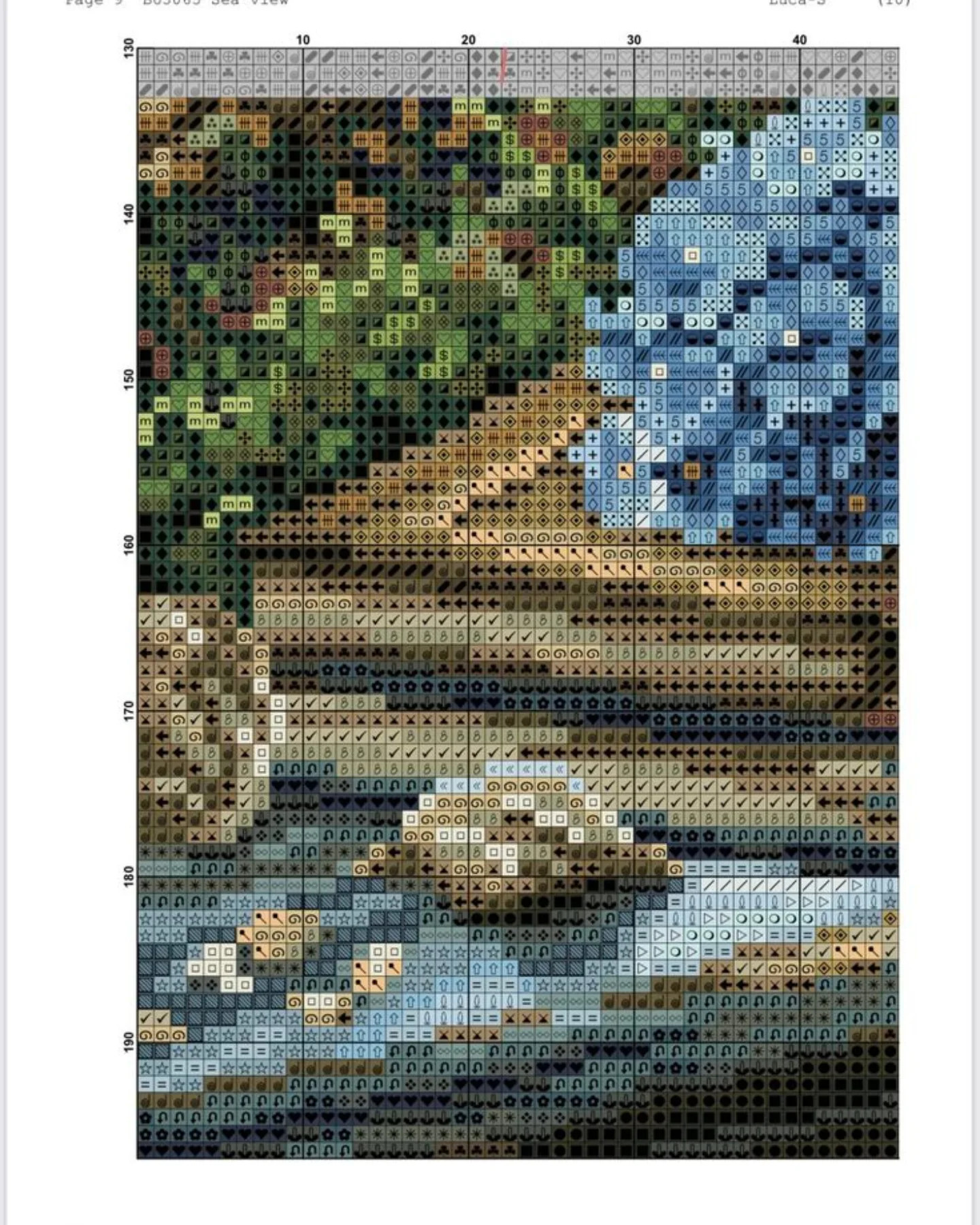 Luca-S Sea View Cross Stitch Pattern Chart - Blue Hydrangeas and Ocean ...
