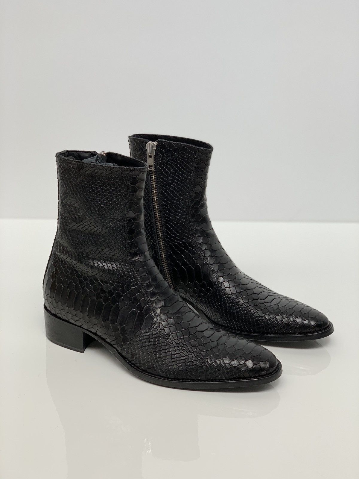 Luca 40mm Side Zip Boot - Black Python-Effect Leather – FROMTHEFIRST