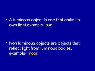 PPT - luminous object: something that produces its own light PowerPoint ...