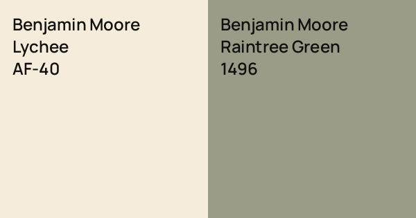 Benjamin Moore Lychee vs. Benjamin Moore Raintree Green comparison