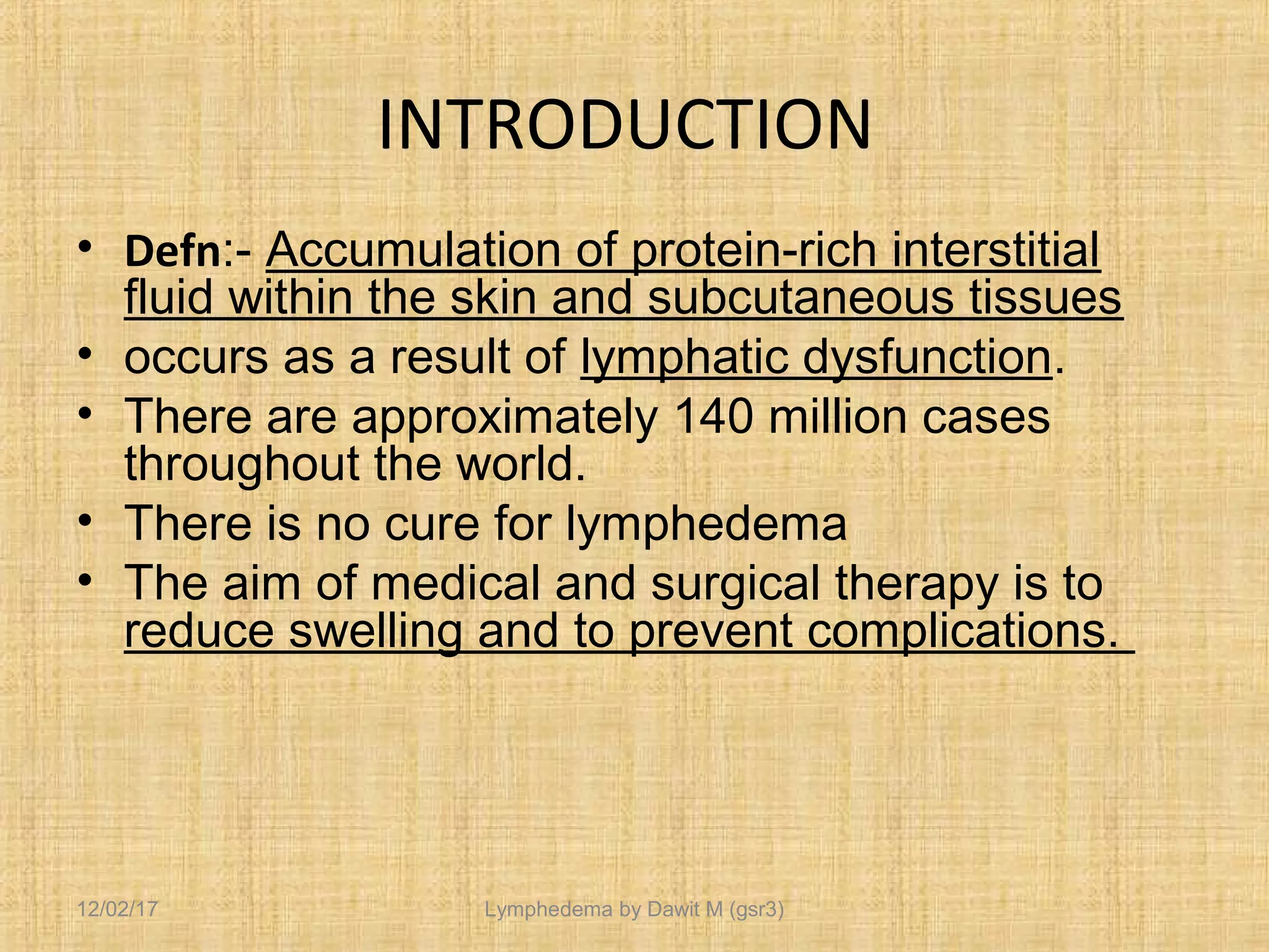 Lymphedema by Dr.dawit surgical resident@ Jimma university | PPT