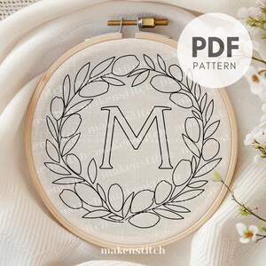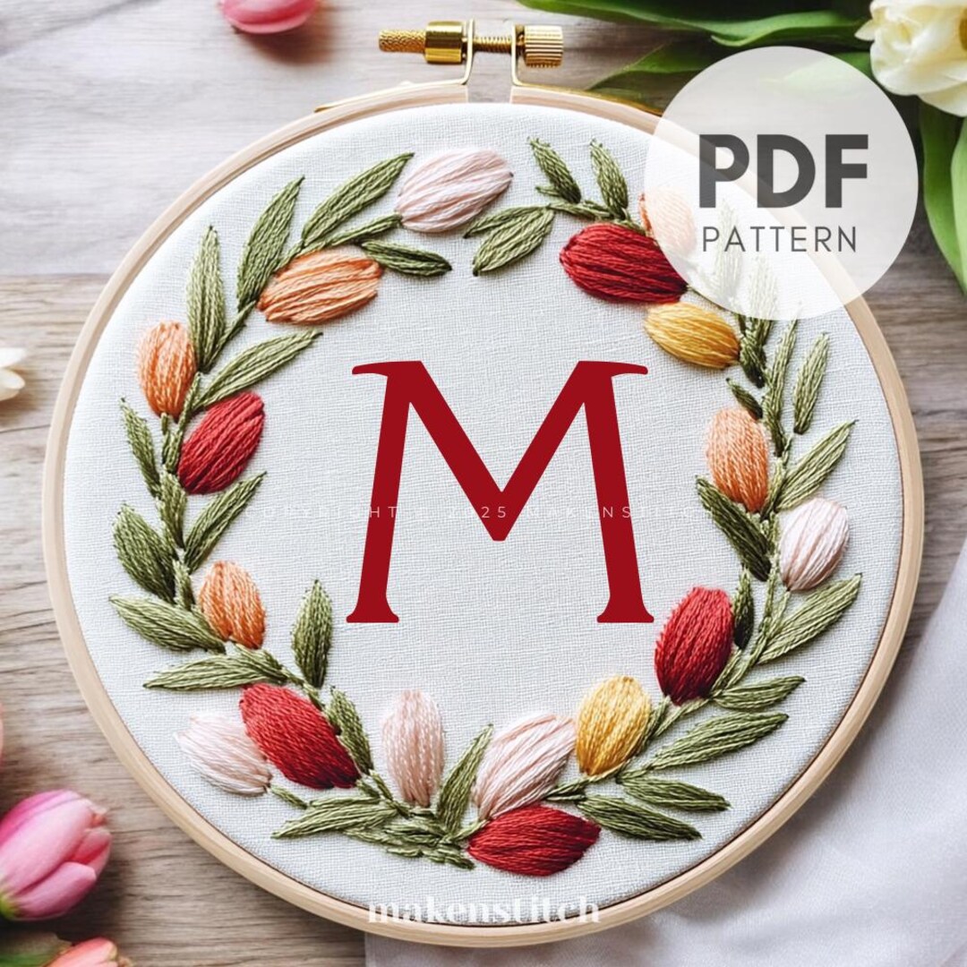 Floral Letter M Embroidery Pattern: Tulip Wreath Monogram (PDF Digital ...