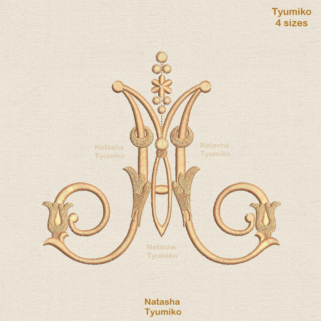 M Monogram Machine Embroidery Design - 2 sizes | Royal Present Embroidery