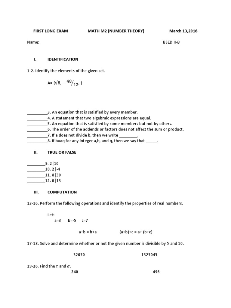 Math M2 Number Theory Exam Solutions | PDF | Factorization | Elementary ...