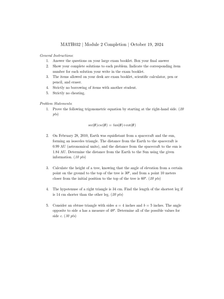 Here are multiple questions from a General Mathematics M2 test: Question..