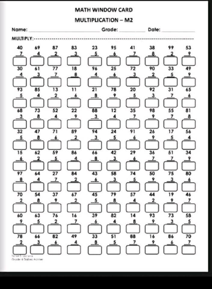 MATH WINDOW CARD MULTIPLICATION-M2 - Brainly.in