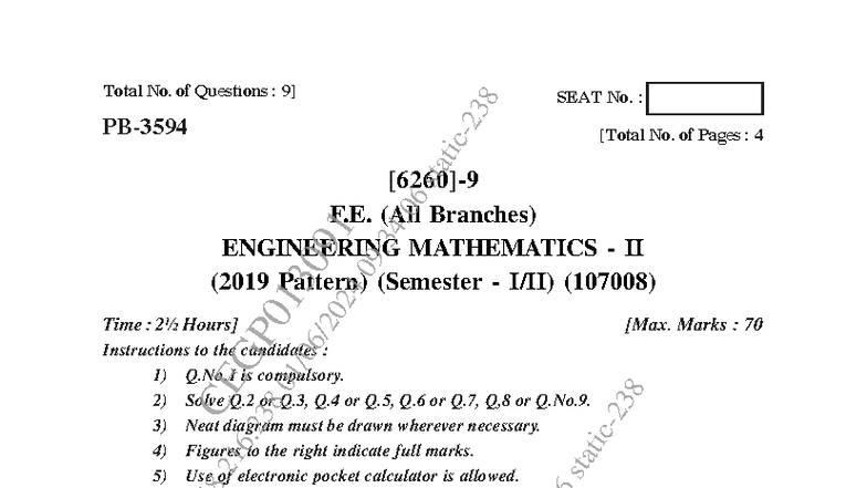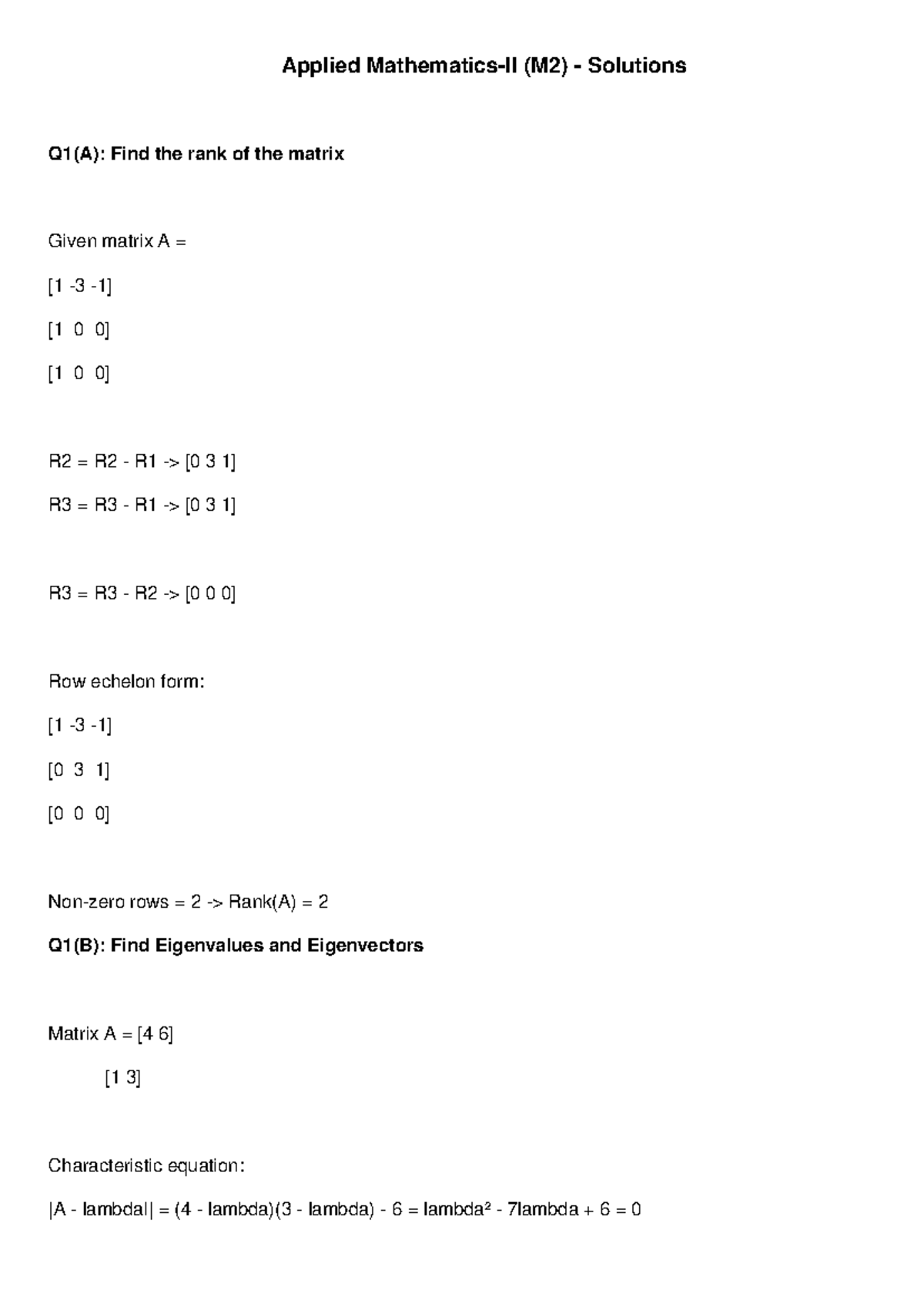 Applied Mathematics-II (M2) - Q1 & Q2 Solutions Explained - Studocu
